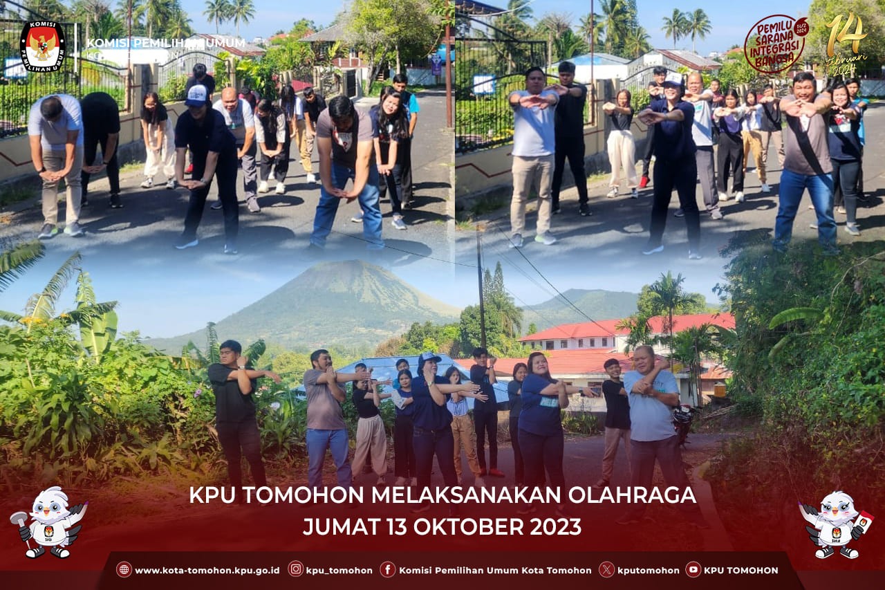 Tomohon, kota-tomohon.kpu.go.id - Menindaklanjuti Surat Dinas Sekretaris Jenderal Nomor 2963/SDM.07.1/-SD/04/2023 Tanggal 8 Agustus 2023 Perihal Pelaksanaan Olahraga pada Hari Jumat, KPU Kota Tomohon Melaksanakan Olahraga Jumat 13 Oktober 2023.