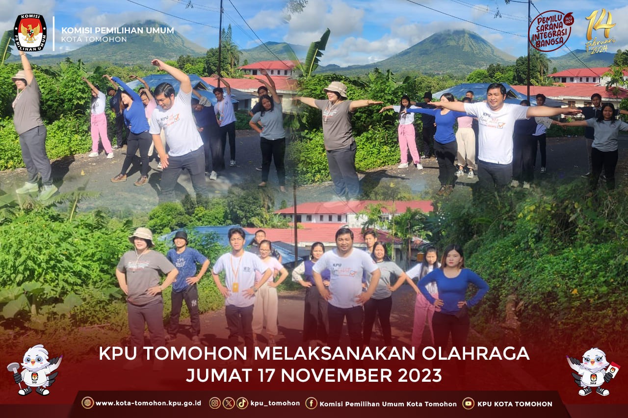 Tomohon, kota-tomohon.kpu.go.id - Menindaklanjuti Surat Dinas Sekretaris Jenderal Nomor 2963/SDM.07.1/-SD/04/2023 Tanggal 8 Agustus 2023 Perihal Pelaksanaan Olahraga pada Hari Jumat, KPU Kota Tomohon Melaksanakan Olahraga Jumat 17 November 2023.