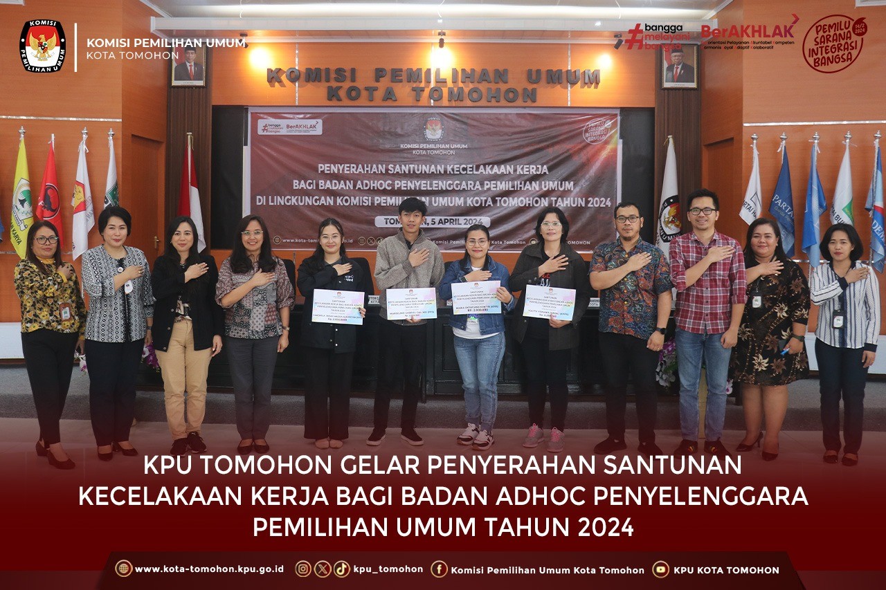 KPU Tomohon Gelar Penyerahan Santunan Kecelakaan Kerja Bagi Badan Adhoc Penyelenggara Pemilihan Umum Tahun 2024