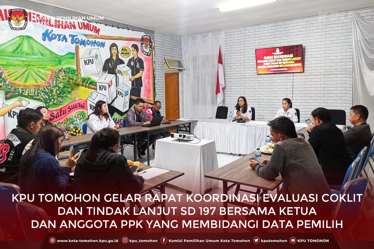 KPU Tomohon Gelar Rakor Evaluasi Coklit dan Tindak Lanjut SD 197 bersama Ketua dan Anggota PPK yang Membidangi Data Pemilih