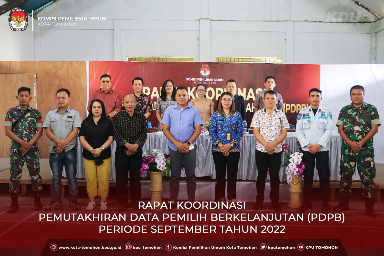 Tomohon, kota-tomohon.kpu.go.id - KPU Kota Tomohon menggelar rapat koordinasi PDPB Tahun 2022 Periode September bertempat di Kantor KPU Kota Tomohon, Sabtu (1/10). Rakor dihadiri oleh Ketua Bawaslu Tomohon Deisy Soputan, Koramil Tomohon, Kapolres Tomohon, Lembaga Pemasyarakatan Perempuan, Lembaga Pembinaan Khusus Anak, Camat Tomohon Tengah, Camat Tomohon Barat, Camat Tomohon Timur dan Camat Tomohon Utara,