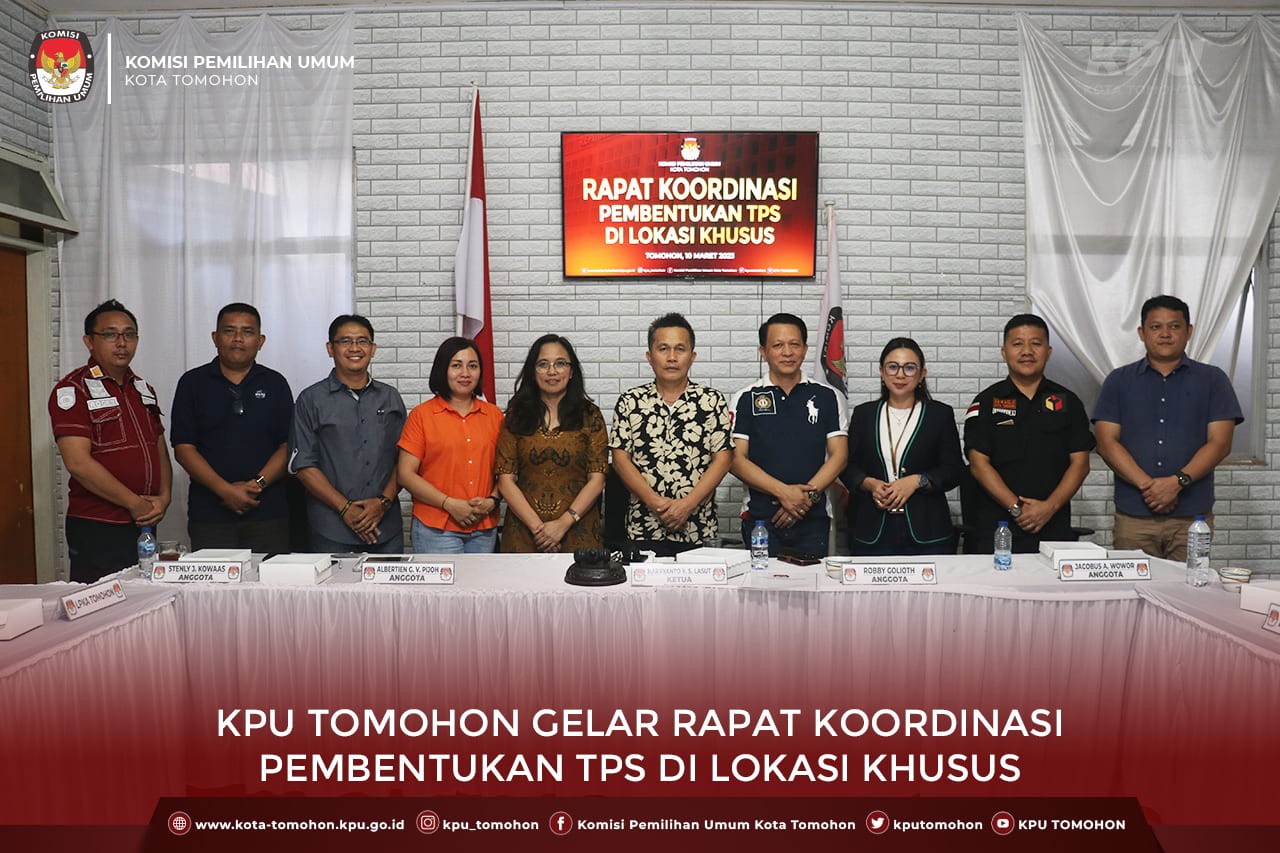 Tomohon, kota-tomohon.kpu.go.id - KPU Tomohon menggelar Rapat Koordinasi Pembentukan TPS di Lokasi Khusus bersama Lembaga Pembinaan Khusus Anak (LPKA) Kelas II Tomohon, Lembaga Pemasyarakatan Perempuan (LPP) Tomohon dan Bawaslu Tomohon di Kantor KPU Kota Tomohon, Jumat (10/3).