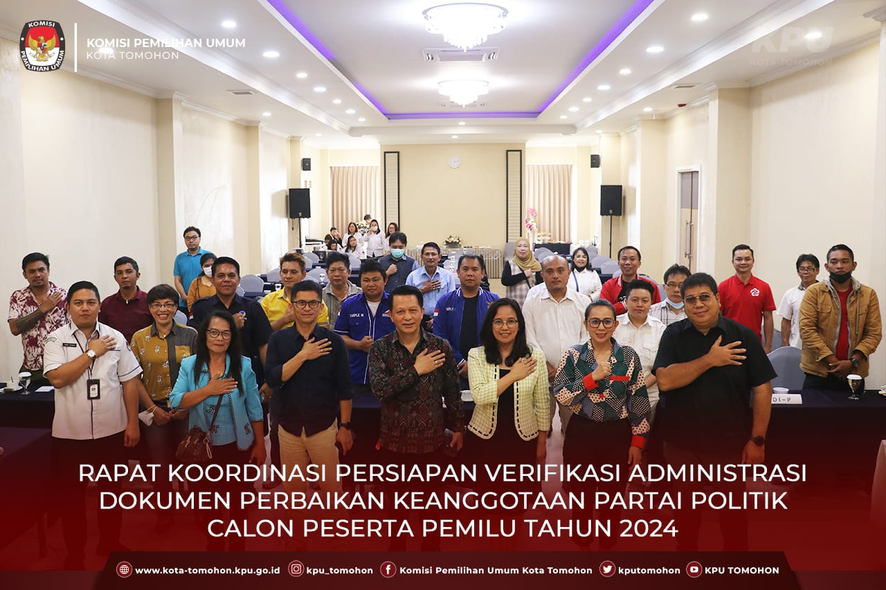 KPU Tomohon Gelar Rakor Persiapan Verifikasi Administrasi Dokumen Perbaikan Keanggotaan Partai Politik Calon Peserta Pemilu Tahun 2024