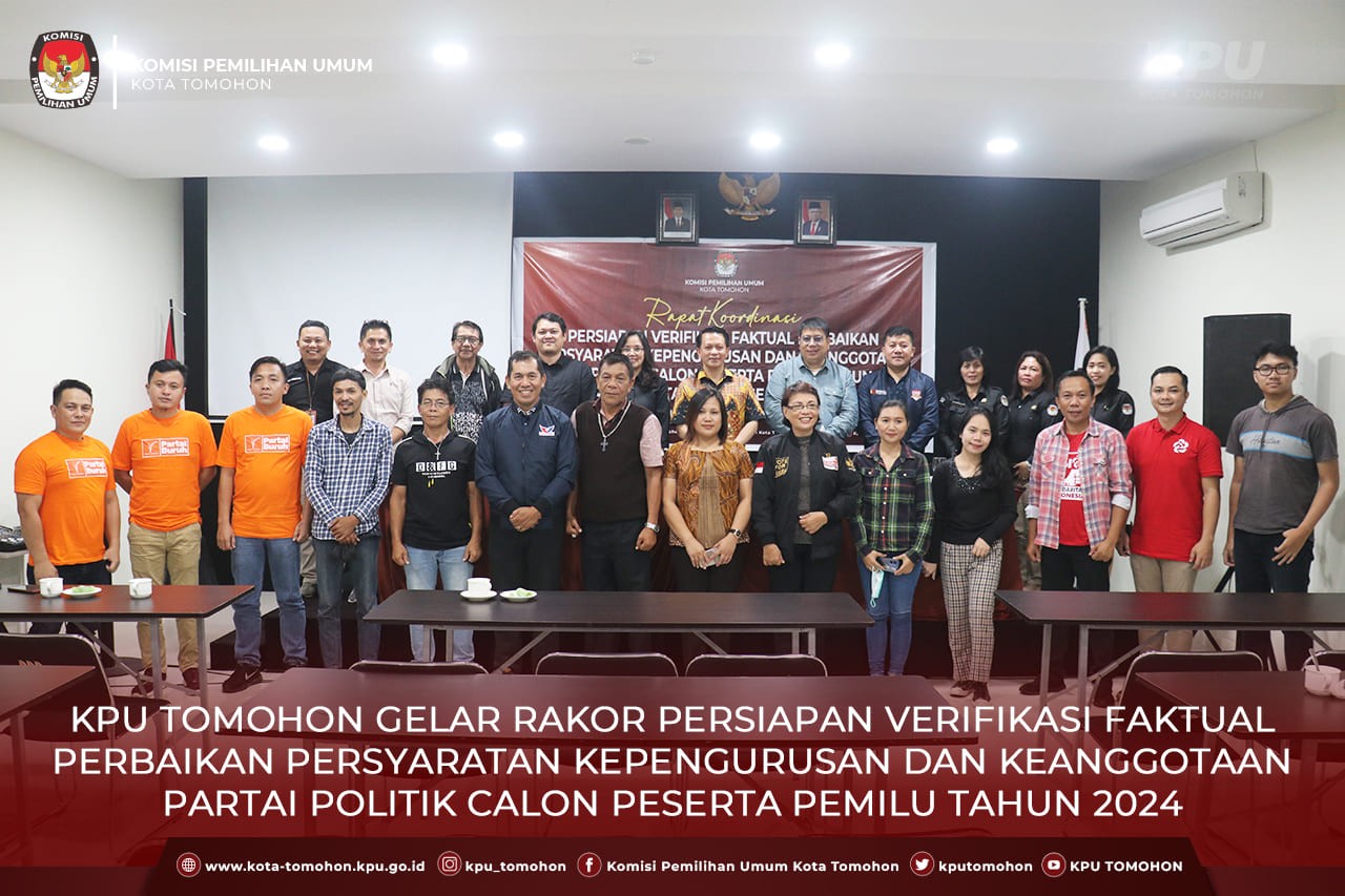 KPU Tomohon Gelar Rakor Persiapan Verifikasi Faktual Perbaikan Persyaratan Kepengurusan dan Keanggotaan Partai Politik Calon Peserta Pemilu Tahun 2024