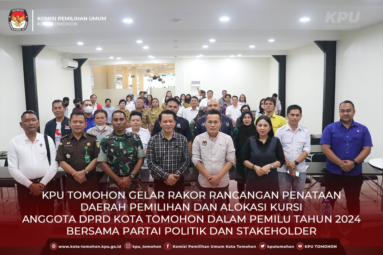 KPU Tomohon Gelar Rakor Rancangan Penataan Daerah Pemilihan dan Alokasi Kursi Anggota DPRD Kota Tomohon dalam Pemilu Tahun 2024 bersama Partai Politik dan Stakeholder