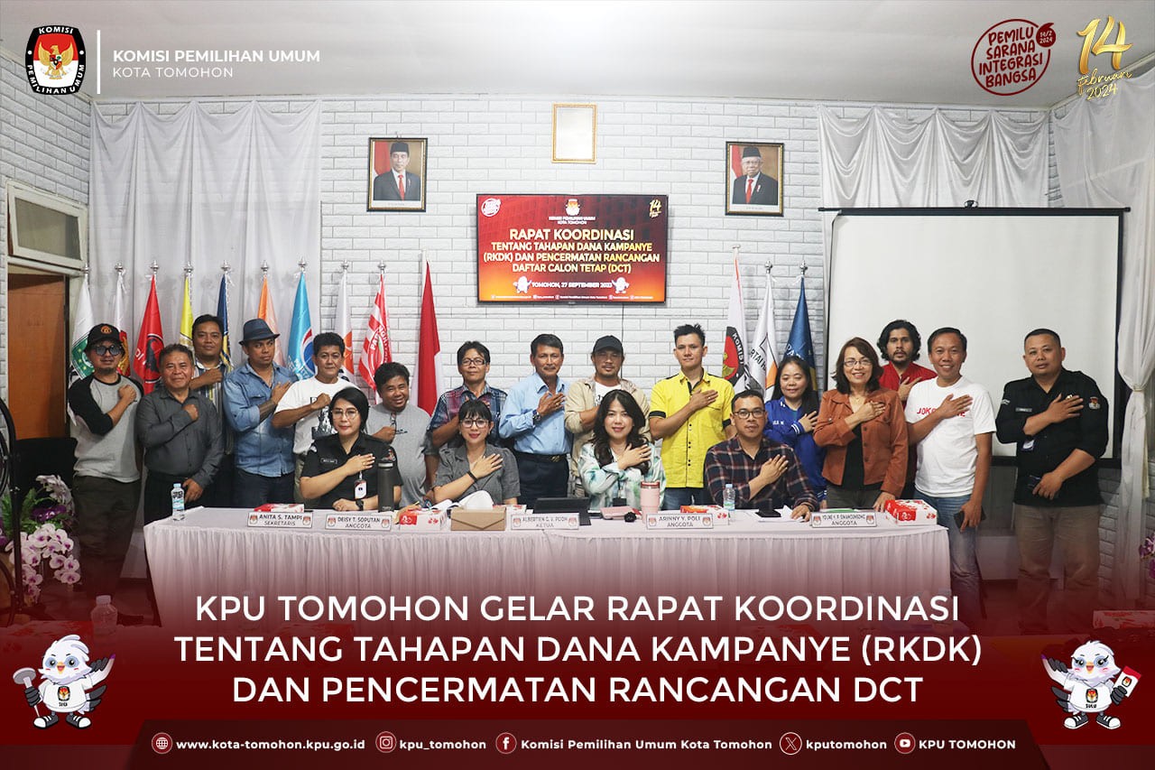 Tomohon, kota-tomohon.kpu.go.id - Komisi Pemilihan Umum (KPU) Kota Tomohon melaksanakan Kegiatan Rapat Koordinasi Tahapan Dana Kampanye (RKDK) dan Tahapan Pencermatan Daftar Calon Tetap (DCT), Rabu 27 September 2023.