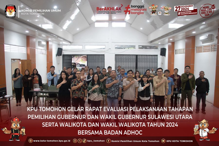 KPU Tomohon Gelar Rapat Evaluasi Pelaksanaan Tahapan Pemilihan Gubernur dan Wakil Gubernur SUlawesi Utara serta Walikota dan Wakil Walikota Tahun 2024 Bersama Badan Adhoc