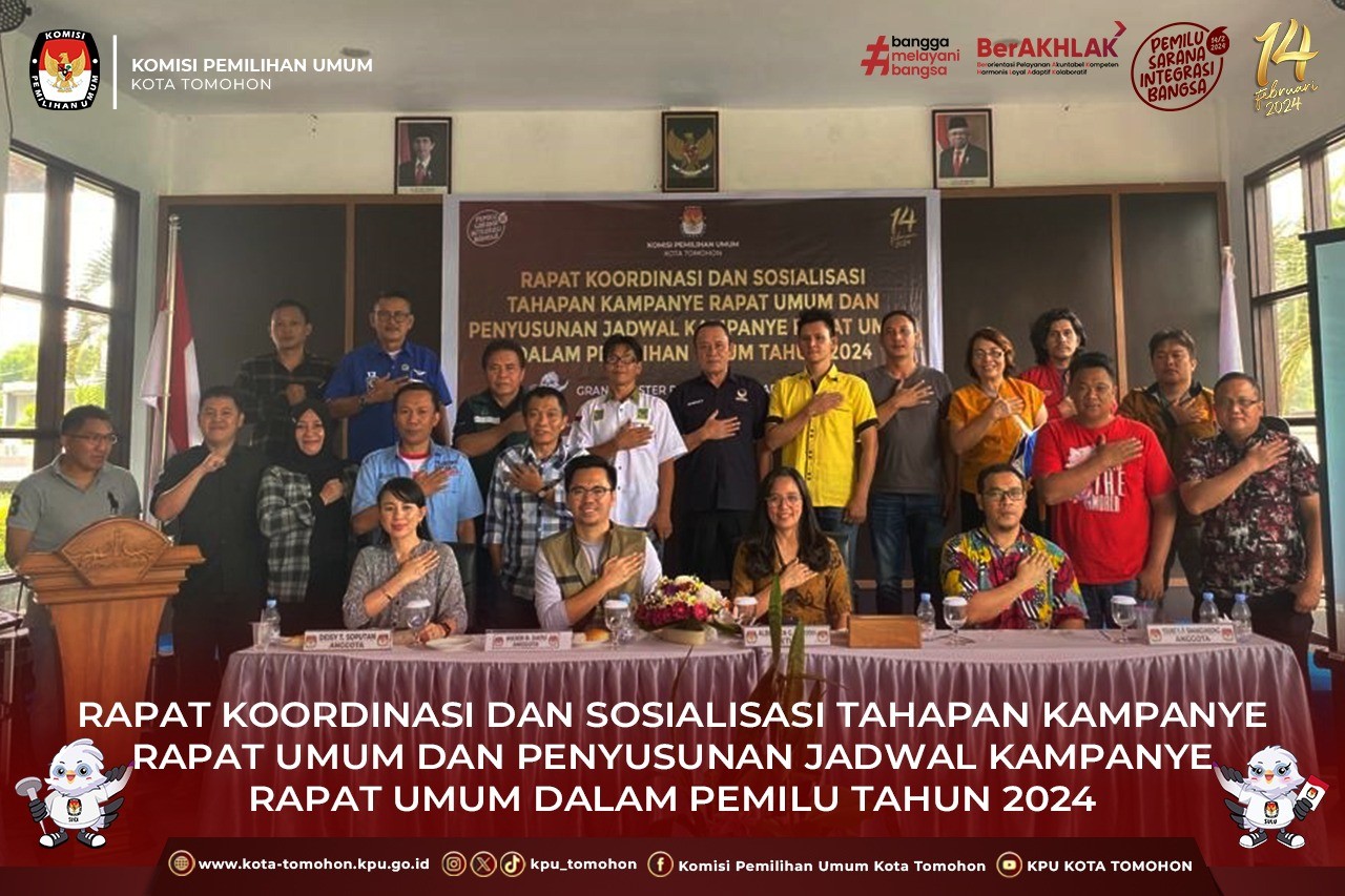 KPU Tomohon Gelar Rapat Koordinasi dan Sosialisasi Tahapan Kampanye Rapat Umum dan Penyusunan Jadwal Kampanye Rapat Umum dalam Pemilihan Umum Tahun 2024