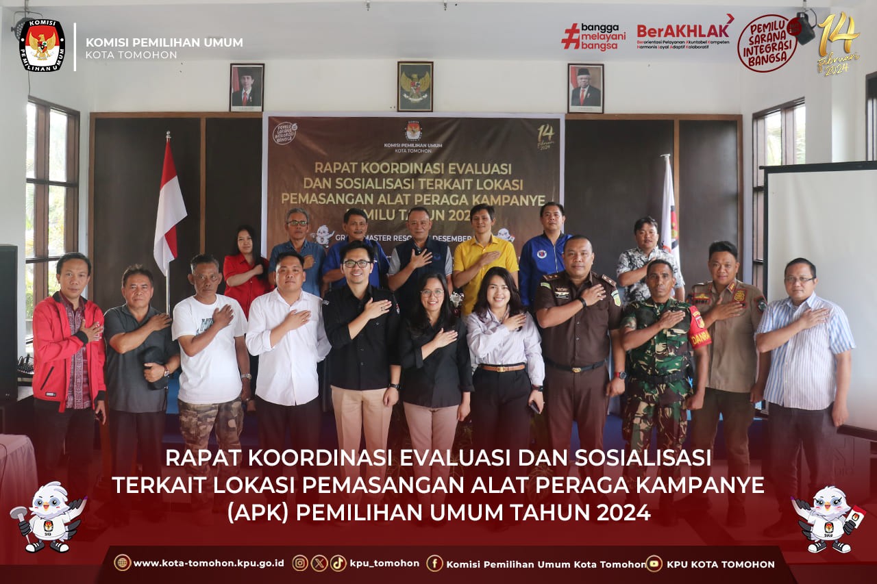 Tomohon, kota-tomohon.kpu.go.id - KPU Tomohon Gelar Rapat Koordinasi Evaluasi dan Sosialisasi terkait Lokasi Pemasangan Alat Peraga Kampanye (APK) untuk Pemilu Tahun 2024, bertempat di Grand Master Resort Tomohon, Rabu (13/12/2023).