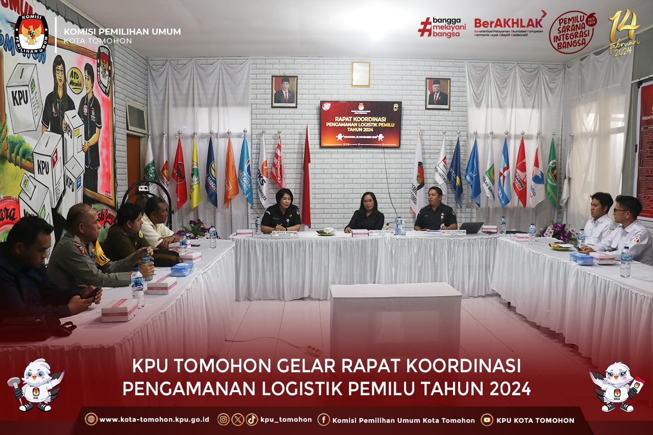 Tomohon, kota-tomohon.kpu.go.id - Komisi Pemilihan Umum (KPU) Kota Tomohn menggelar Rapat Koordinasi (Rakor) Pengamanan Logistik dalam rangka Persiapan Pengamanan Logistik Pemilu Tahun 2024 bertempat di Ruang Rapat Kantor KPU Kota Tomohon, Rabu (22/11).
