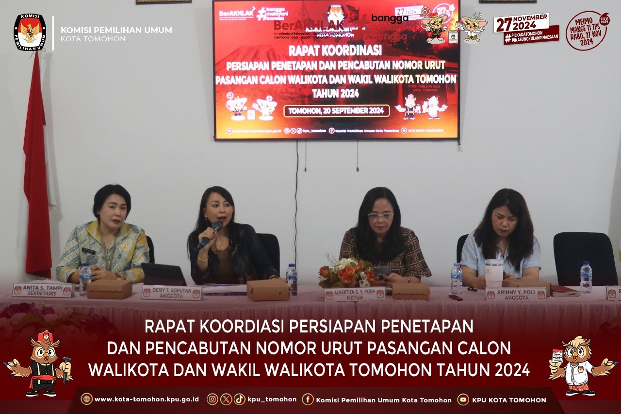 KPU Tomohon Gelar Rapat Koordinasi Persiapan Penetapan dan Pencabutan Nomor Urut Pasangan Calon Walikota dan Wakil Walikota Tomohon Tahun 2024
