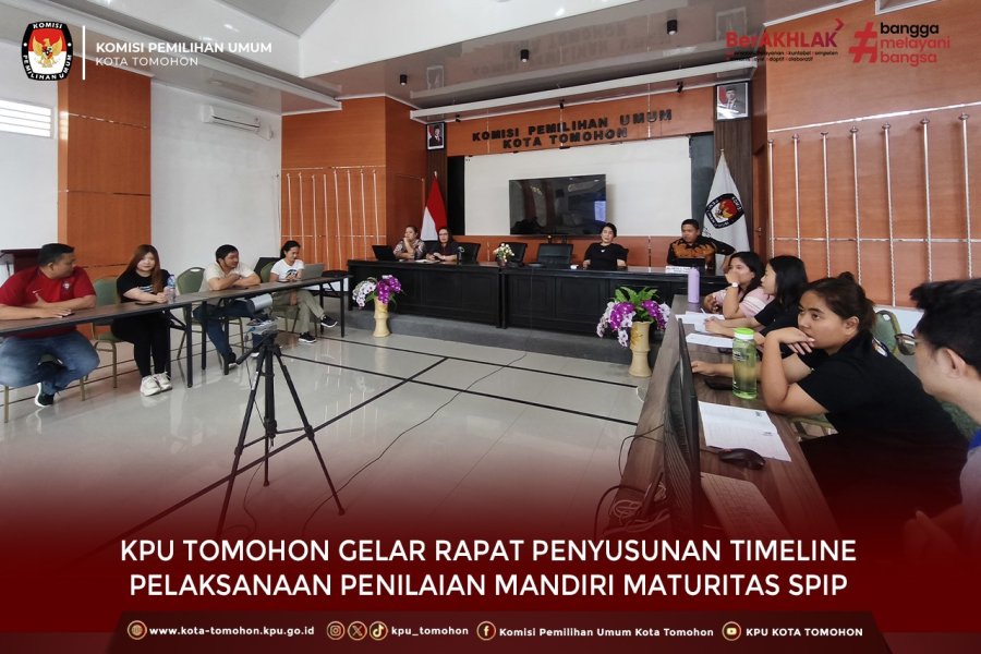Tomohon, kota-tomohon.kpu.go.id - Komisi Pemilihan Umum (KPU) Kota Tomohon melaksanakan rapat rapat penyusunan timeline pelaksanaan Penilaian Mandiri Maturitas Sistem Pengendalian Intern Pemerintah (SPIP) pada Jumat, 01 Agustus 2025 di Aula KPU Kota Tomohon.