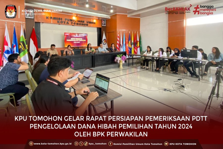KPU Tomohon Gelar Rapat Persiapan Pemeriksaan PDTT Pengelolaan Dana Hibah Pemilihan Tahun 2024 oleh BPK Perwakilan