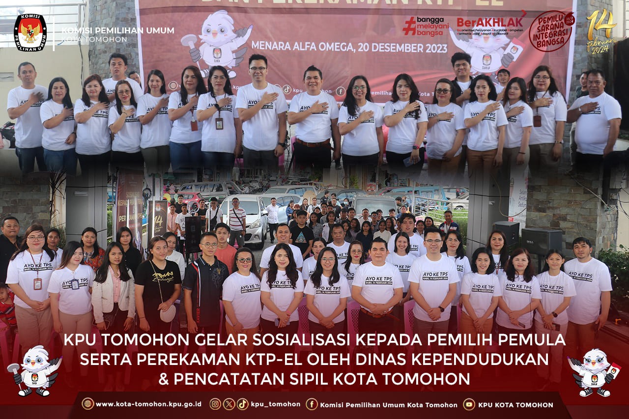 Tomohon, kota-tomohon.kpu.go.id - KPU Kota Tomohon Bersama Dinas Kependudukan dan Pencatatan Sipil Kota Tomohon menggelar kegiatan Sosialisasi kepada Pemilih Pemula dan Perekaman KTP-EL yang bertempat di Menara Alfa Omega Pusat Kota Tomohon, Rabu (20/12).