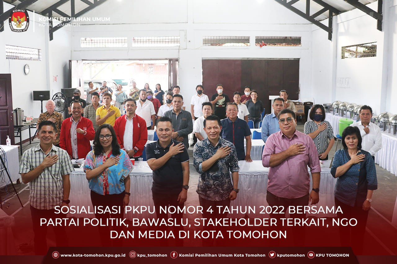 KPU Tomohon Gelar Sosialisasi PKPU Nomor 4 Tahun 2022 Bersama Partai Politik, Bawaslu, Stakeholder Terkait, Ngo dan Media