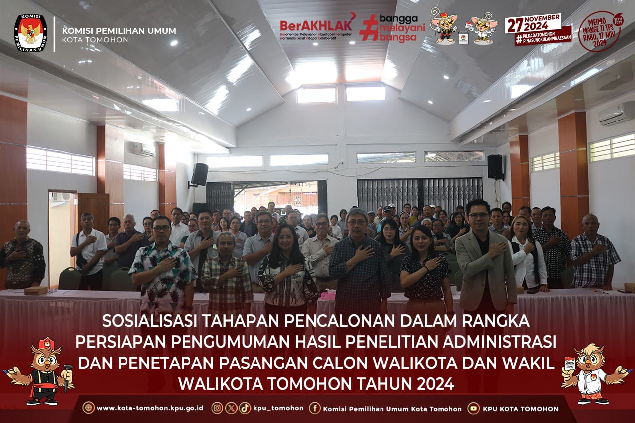 KPU Tomohon Gelar Sosialisasi Tahapan Dalam Rangka Persiapan Pengumuman Hasil Penelitian Administrasi dan Penetapan Pasangan Calon Walikota dan Wakil Walikota Tomohon Tahun 2024