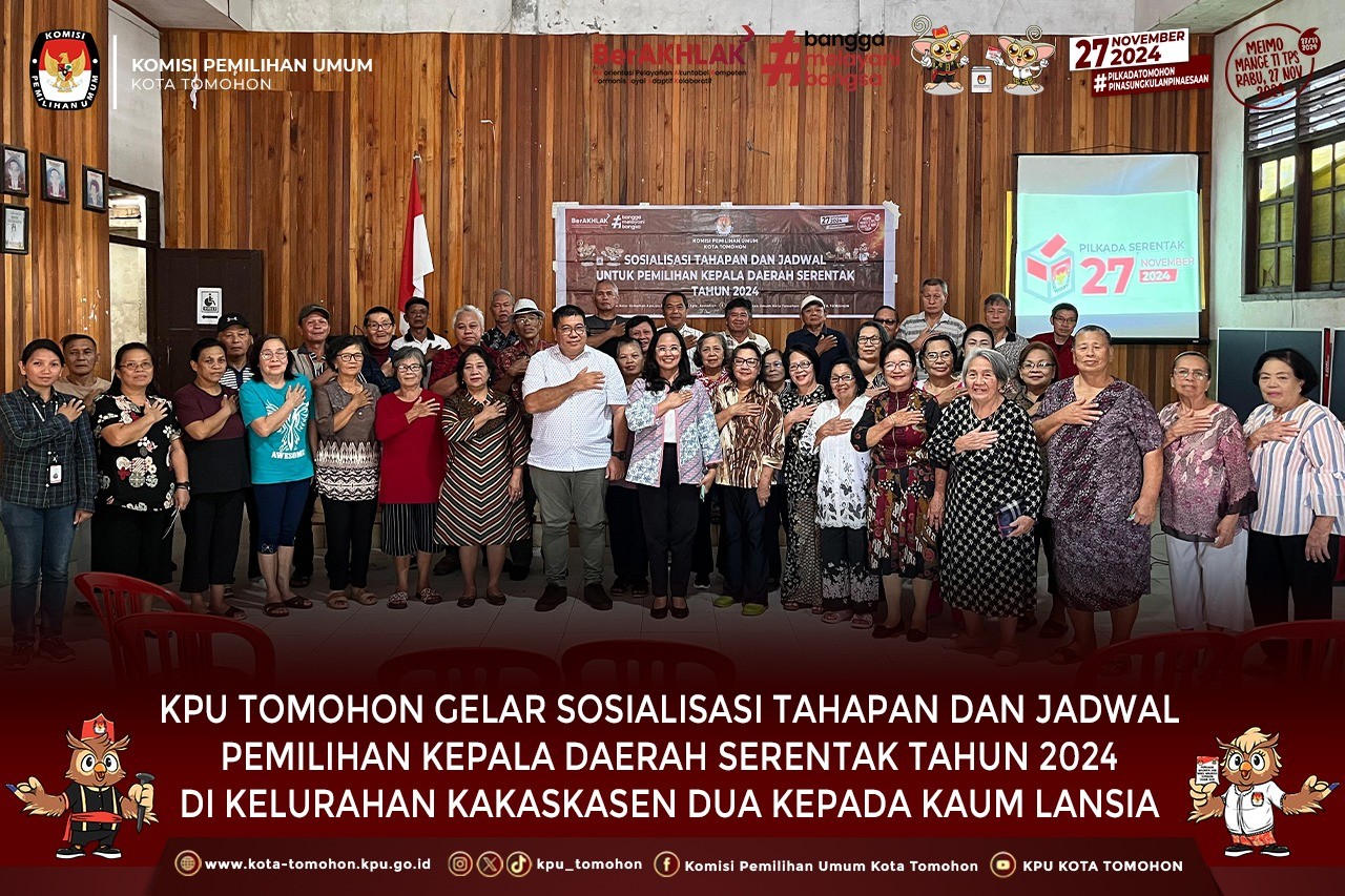 KPU Tomohon Gelar Sosialisasi Tahapan dan Jadwal Pemilihan Kepala Daerah Serentak Tahun 2024 di Kelurahan Kakaskasen Dua kepada Kaum Lansia