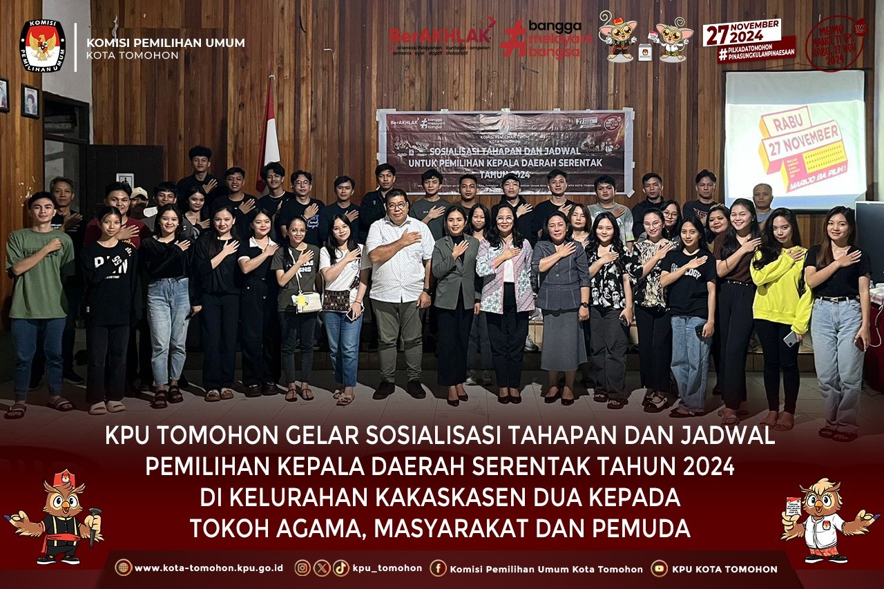 KPU Tomohon Gelar Sosialisasi Tahapan dan Jadwal Pemilihan Kepala Daerah Serentak Tahun 2024 di Kelurahan Kakaskasen Dua kepada Tokoh Agama, Masyarakat dan Pemuda