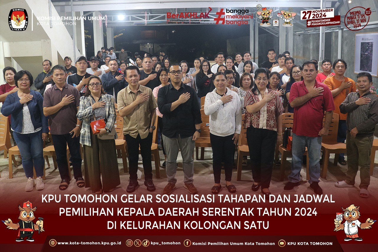 Tomohon, kota-tomohon.kpu.go.id - Komisi Pemilihan Umum (KPU) Kota Tomohon menggelar Sosialisasi Tahapan dan Jadwal Pemilihan Kepala Daerah Serentak Tahun 2024, bertempat di Kolongan Satu, Rabu (30/10/2024).