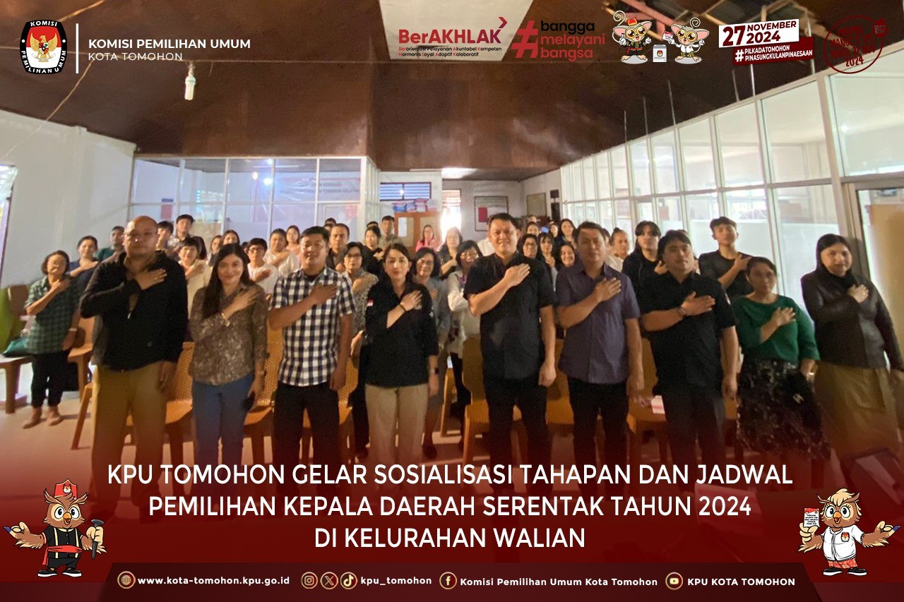 Tomohon, kota-tomohon.kpu.go.id - Komisi Pemilihan Umum (KPU) Kota Tomohon menggelar Sosialisasi Tahapan dan Jadwal Pemilihan Kepala Daerah Serentak Tahun 2024, bertempat di Walian, Selasa (12/11/2024).