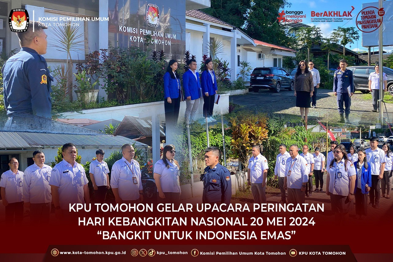 Tomohon, kota-tomohon.kpu.go.id - Komisi Pemilihan Umum (KPU) Kota Tomohon menggelar Upacara Peringatan Hari Kebangkitan Nasional bertempat di Halaman Kantor KPU Kota Tomohon, Senin (20/05/2024) dengan Tema : "Bangkit Untuk Indonesia Emas".