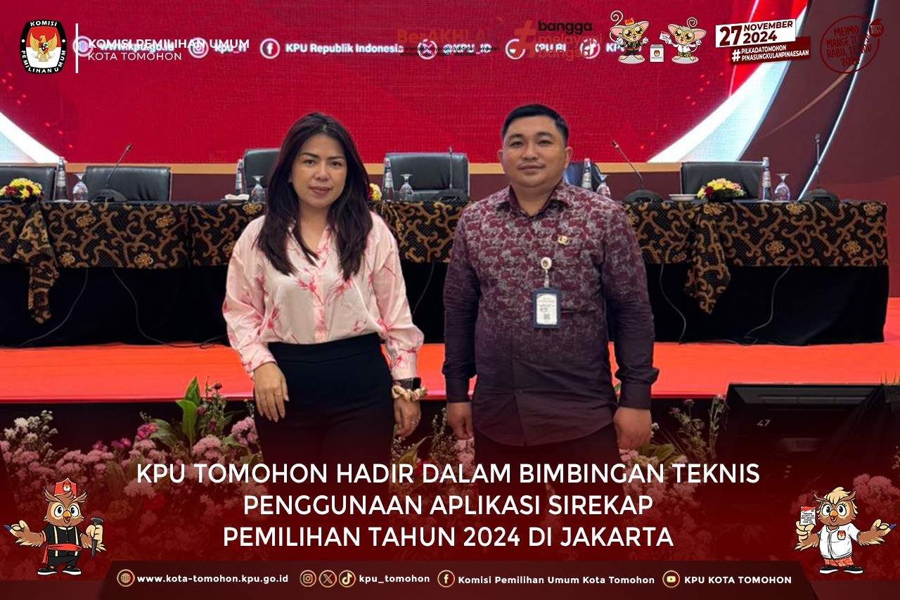 KPU Tomohon Hadir Dalam Kegiatan Bimbingan Teknis Penggunaan Aplikasi Sirekap Pemilihan Tahun 2024 di Jakarta