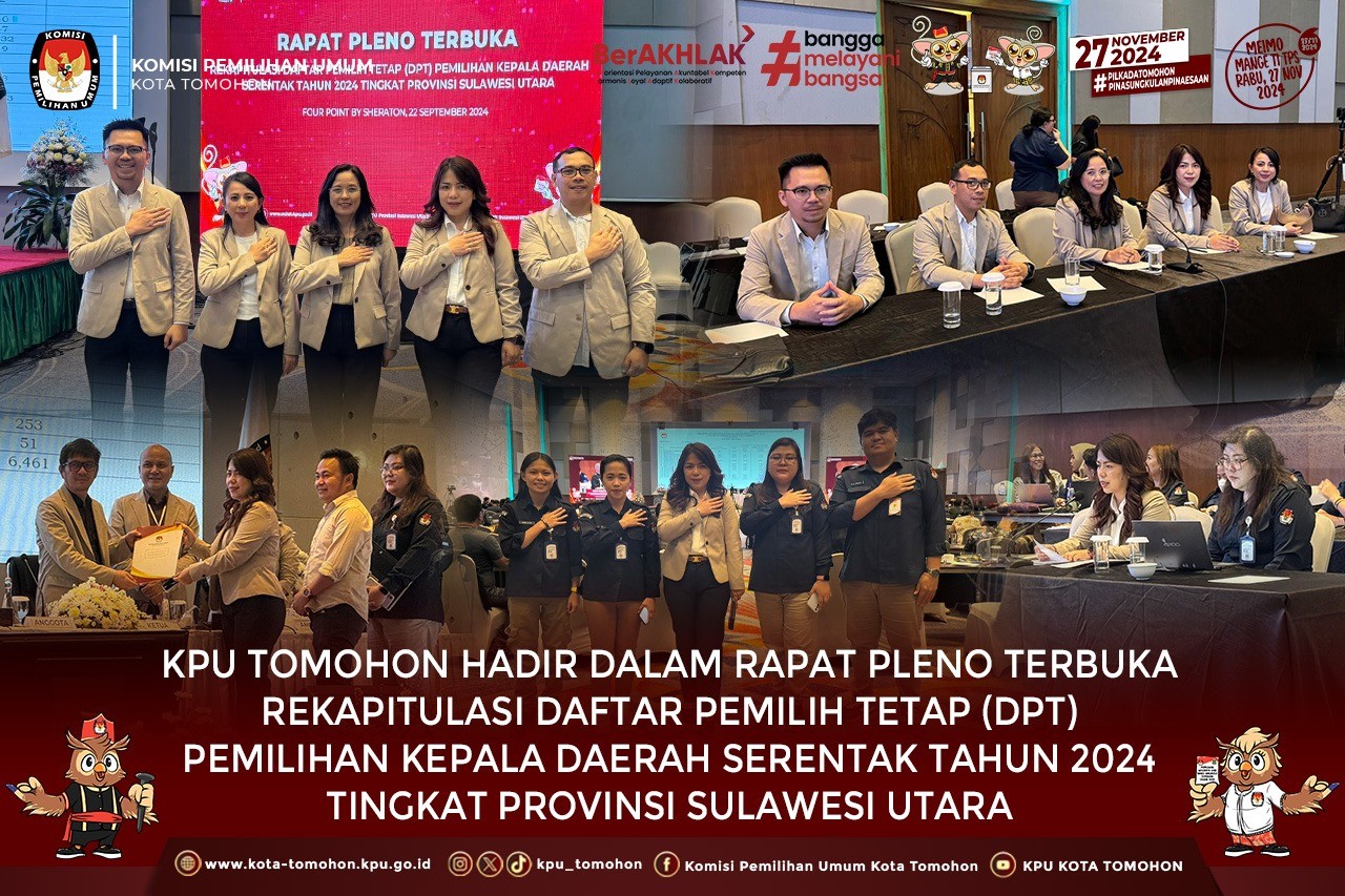 KPU Tomohon Hadir Dalam Rapat Pleno Terbuka Rekapitulasi Daftar Pemilih Tetap (DPT) Pemilihan Kepala Daerah Serentak Tahun 2024 Tingkat Provinsi Sulawesi Utara
