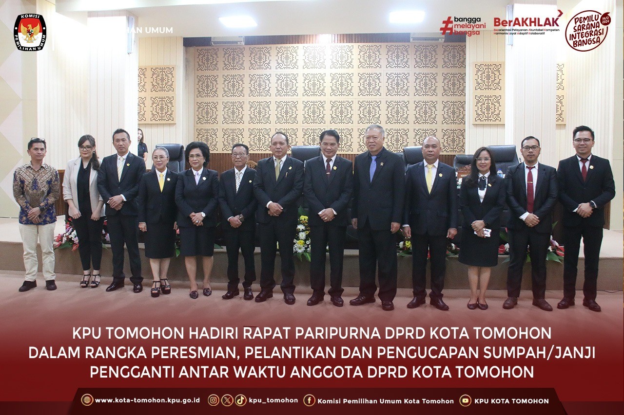 KPU Tomohon Hadiri Rapat Paripurna DPRD Kota Tomohon dalam rangka Peresmina, Pelantikan dan Pengucapan Sumpah/Janji PAW Anggota DPRD Kota Tomohon