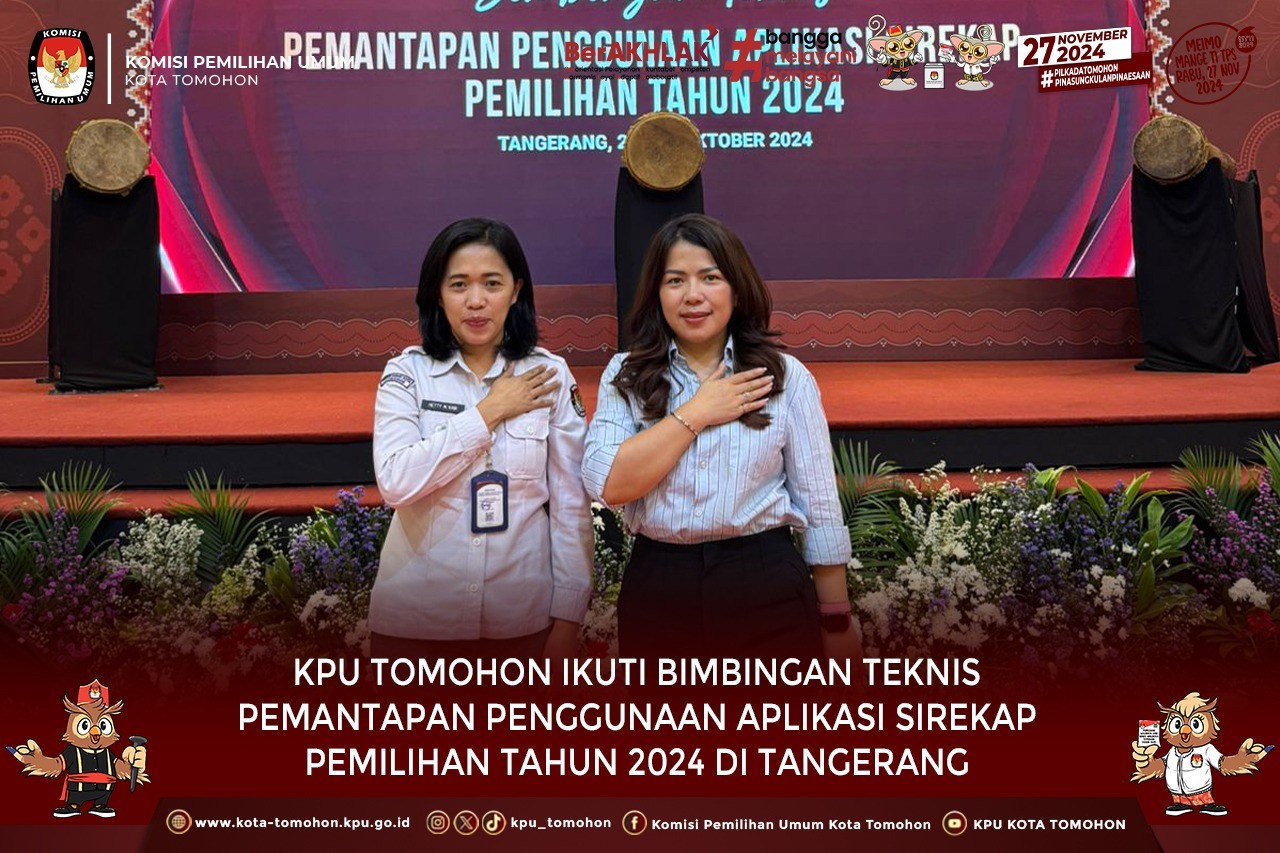 Tomohon, kota-tomohon.kpu.go.id - Ketua Divisi Perencanaan, Data dan Informasi Arinny Y. Poli bersama Kasubag Perencanaan, Data dan Informasi Hetty M. Kabi mengikuti Bimbingan Teknis Pemantapan Penggunaan Aplikasi Sirekap Pemilihan Tahun 2024 di Tangerang, 24 s.d 26 Oktober 2024.