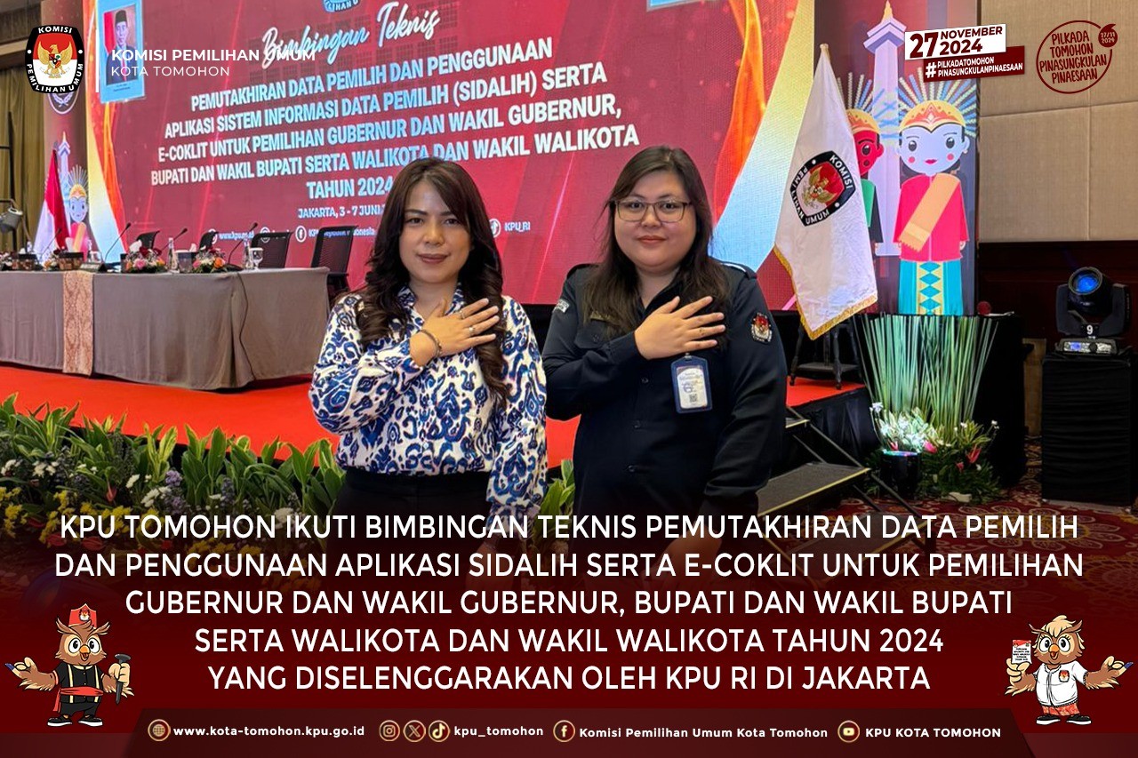 KPU Tomohon Ikuti Bimbingan Teknis Pemutakhiran Data Pemilih dan Penggunaan Aplikasi SIDALIH dan E-Coklit untuk Pemilihan Kepala Daerah Tahun 2024 di Jakarta