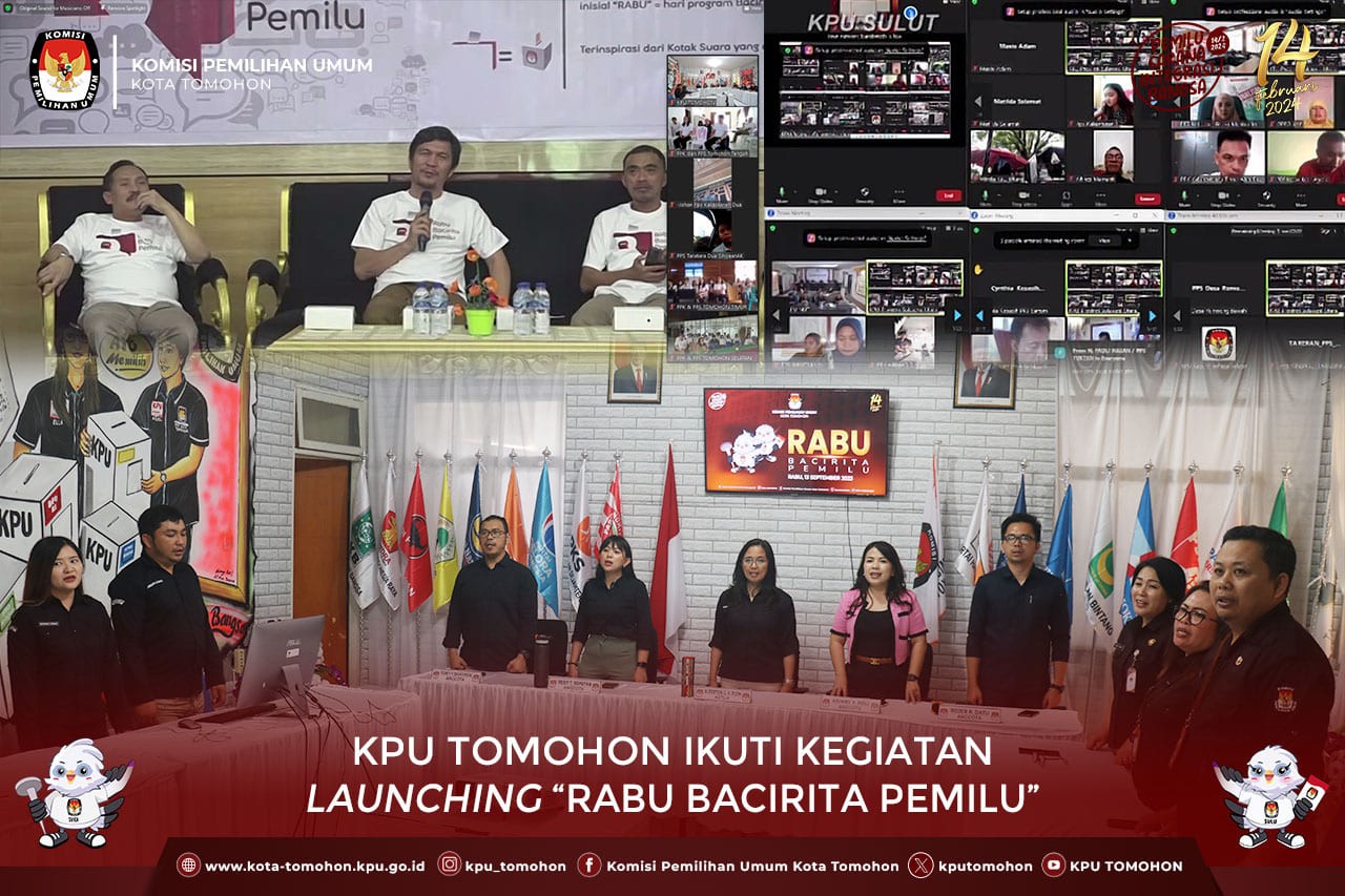 Tomohon, kota-tomohon.kpu.go.id - Komisi Pemilihan Umum (KPU) Kota Tomohon mengikuti Kegiatan Launching Rabu Bacarita Pemilu yang diselenggarakan oleh KPU Provinsi Sulawesi Utara, Rabu 13 September 2023.