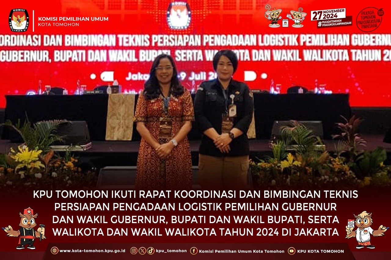 Tomohon, kota-tomohon.kpu.go.id - Ketua KPU Kota Tomohon Albertien G. V. Pijoh dan Sekretaris Anita S. Tampi mengikuti Rapat Koordinasi dan Bimbingan Teknis Persiapan Pengadaan Logistik Pemilihan Gubernur dan Wakil Gubernur, Bupati dan Wakil Bupati, serta Walikota dan Wakil Walikota Tahun 2024.