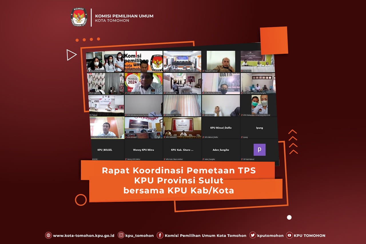 Tomohon, kota-tomohon.kpu.go.id - KPU Kota Tomohon mengikuti Rapat Koordinasi Pemetaan TPS secara daring, yang diselenggarakan oleh KPU Provinsi Sulawesi Utara bersama 15 Kab/Kota se Sulut (14/04).