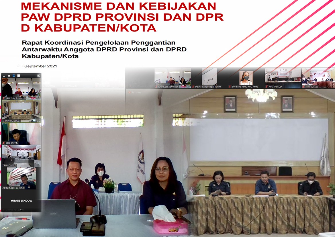 Dengan pokok pembahasan yaitu mekanisme dan kebijakan Pergantian Antar Waktu DPRD Provinsi dan DPRD Kabupaten/Kota. Kegiatan ditutup langsung oleh Kepala Divisi Teknis Penyelenggara KPU Provinsi Sulawesi Utara Yessy Momongan.