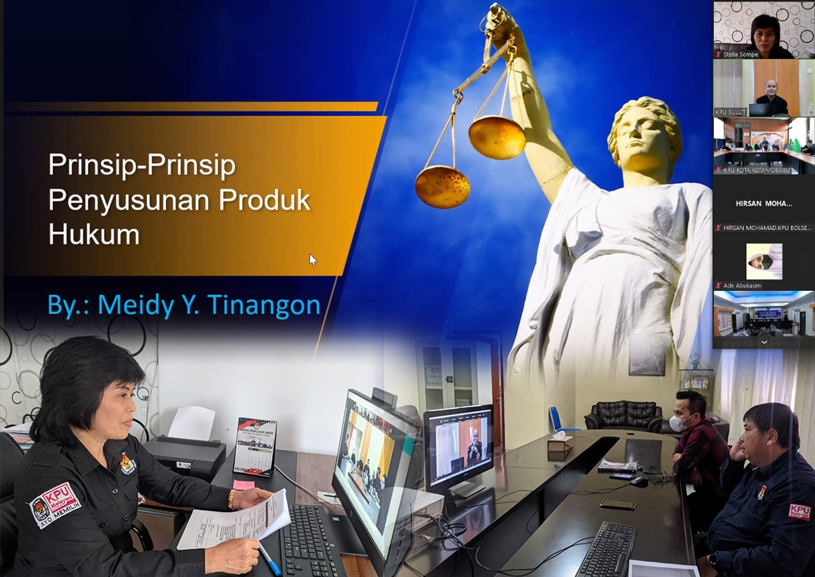 - Meidy Y. Tinangon sebagai Ketua Divisi Hukum dan Pengawasan KPU Provinsi Sulawesi Utara yang menyampaikan materi "Prinsip-Prinsip Penyusunan Produk Hukum"