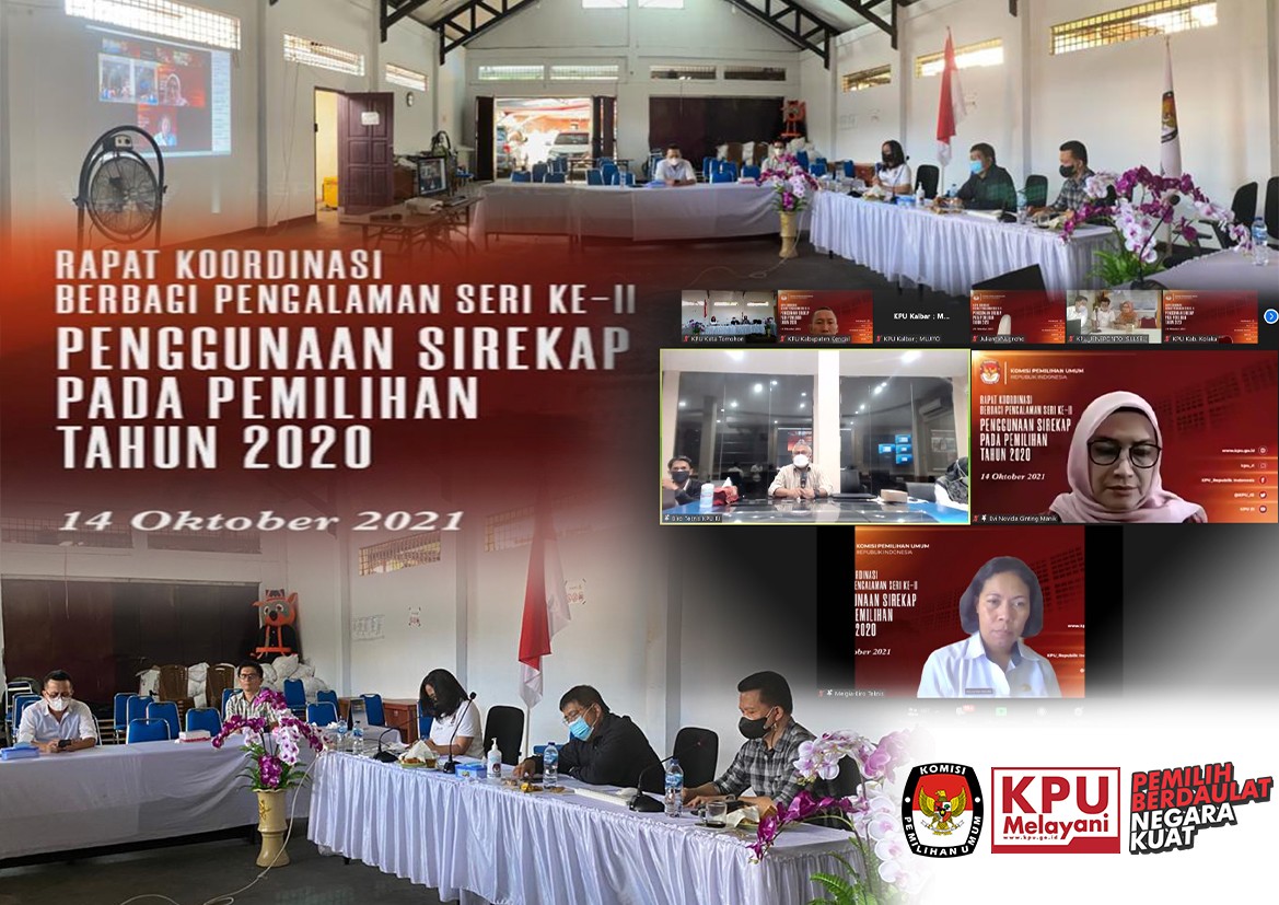 Tomohon, 14 oktober 2021. KPU Kota Tomohon mengikuti Rakor yang dilaksanakan oleh KPU RI secara Daring. Rakor terkait SHARING OF EXPERIENCE PENGGUNAAN SIREKAP di hadiri oleh Anggota KPU Provinsi, Anggota KPU Kabupaten/Kota, Kepala Bagian Hukum, Teknis dan Hupmas, Kepala sub bagian Teknis KPU Provinsi, Operator Sirekap KPU Provinsi dan Kepala Sub Bagian Teknis dan Operator Sirekap KPU Kabupaten/Kota. Kegiatan ini bertujuan untuk berbagi pengalaman terkait Aplikasi Sirekap pada Pemilihan Tahun 2020.
