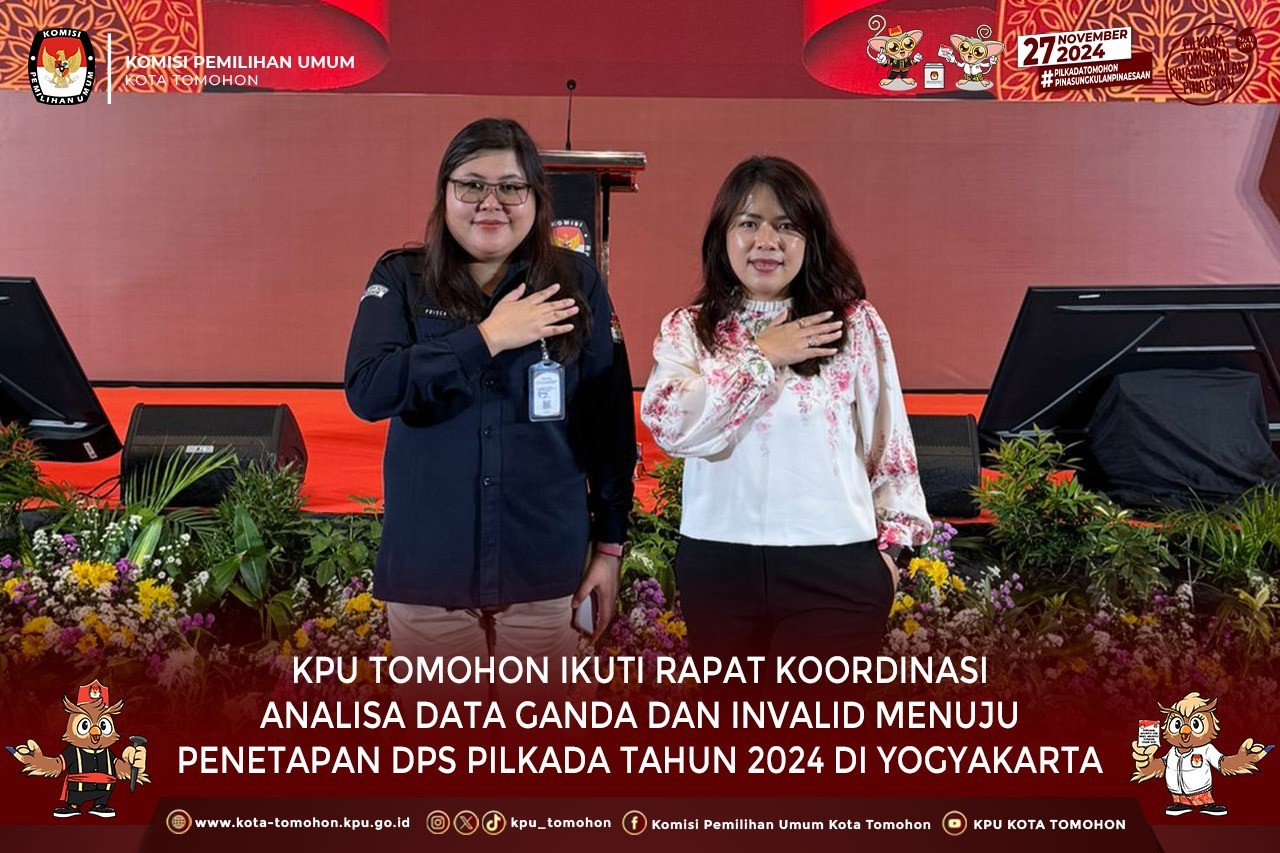 Tomohon, kota-tomohon.kpu.go.id - KPU Kota Tomohon mengikuti Rapat Koordinasi Analisa Data Ganda dan Invalid Menuju Penetapan DPS Pilkada Tahun 2024 di Yogyakarta, 3 s.d 7 Agustus 2024.