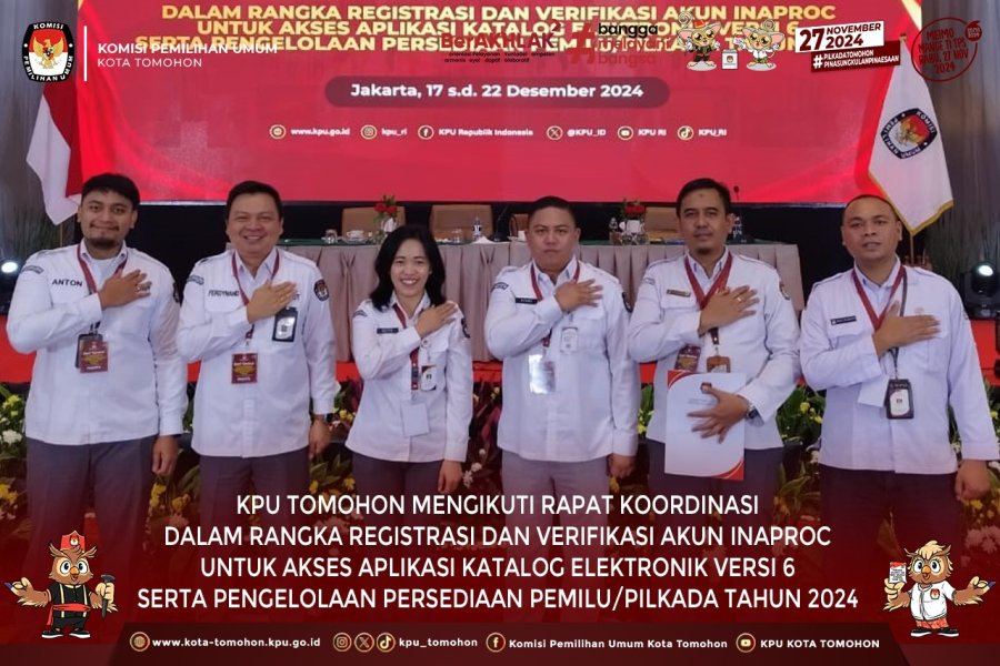 KPU Tomohon Ikuti Rapat Koordinasi dalam rangka Registrasi dan Verifikasi Akun Inaproc untuk Akses Aplikasi Katalog Elektronik Versi 6 serta Pengelolaan Persediaan Pemilu/Pilkada Tahun 2024