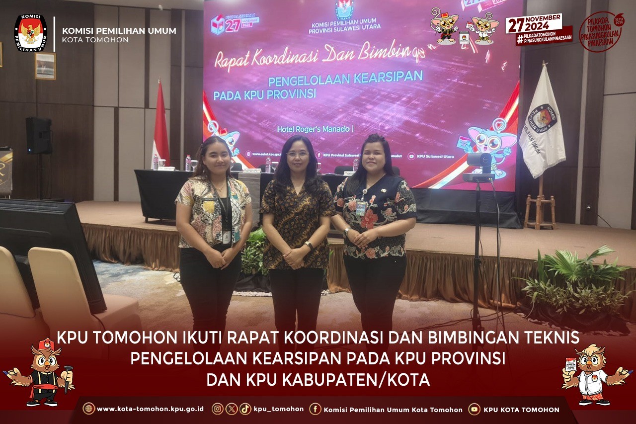 Tomohon, kota-tomohon.kpu.go.id - KPU Kota Tomohon Mengikuti Rapat Koordinasi dan Bimbingan Teknis Pengelolaan Kearsipan Pada KPU Provinsi dan KPU Kab/Kota se-Sulawesi Utara pada hari Jumat - Sabtu 21 s.d 22 Juni 2024 bertempat di Rogers Hotel Manado.