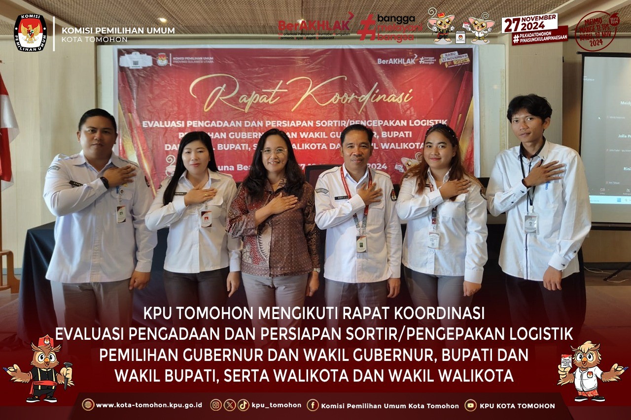 Tomohon, kota-tomohon.kpu.go.id - KPU Kota Tomohon mengikuti Rapat Koordinasi Evaluasi Pengadaan Dan Persiapan Sortir / Pengepakan Logistik Pemilihan Gubernur dan Wakil Gubernur, Bupati dan Wakil Bupati, serta Walikota dan Wakil Walikota yang bertempat di Tahuna Beach Hotel and Resort pada tanggal 17 sampai dengan 18 November 2024.