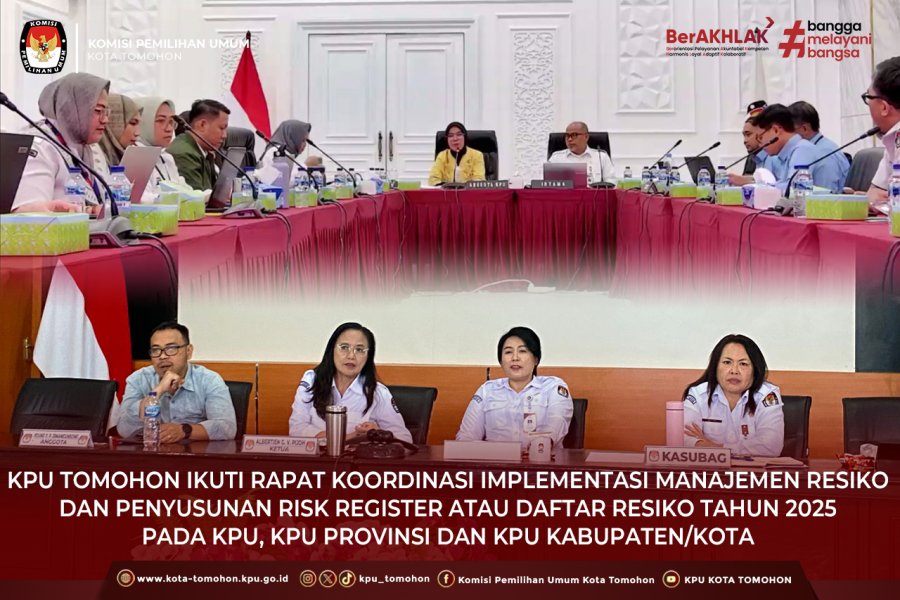 KPU Tomohon Ikuti Rapat Koordinasi Implementasi Manajemen Resiko dan Penyusunan Risk Register atau Daftar Resiko Tahun 2025 pada KPU, KPU Provinsi dan KPU Kabupaten/Kota