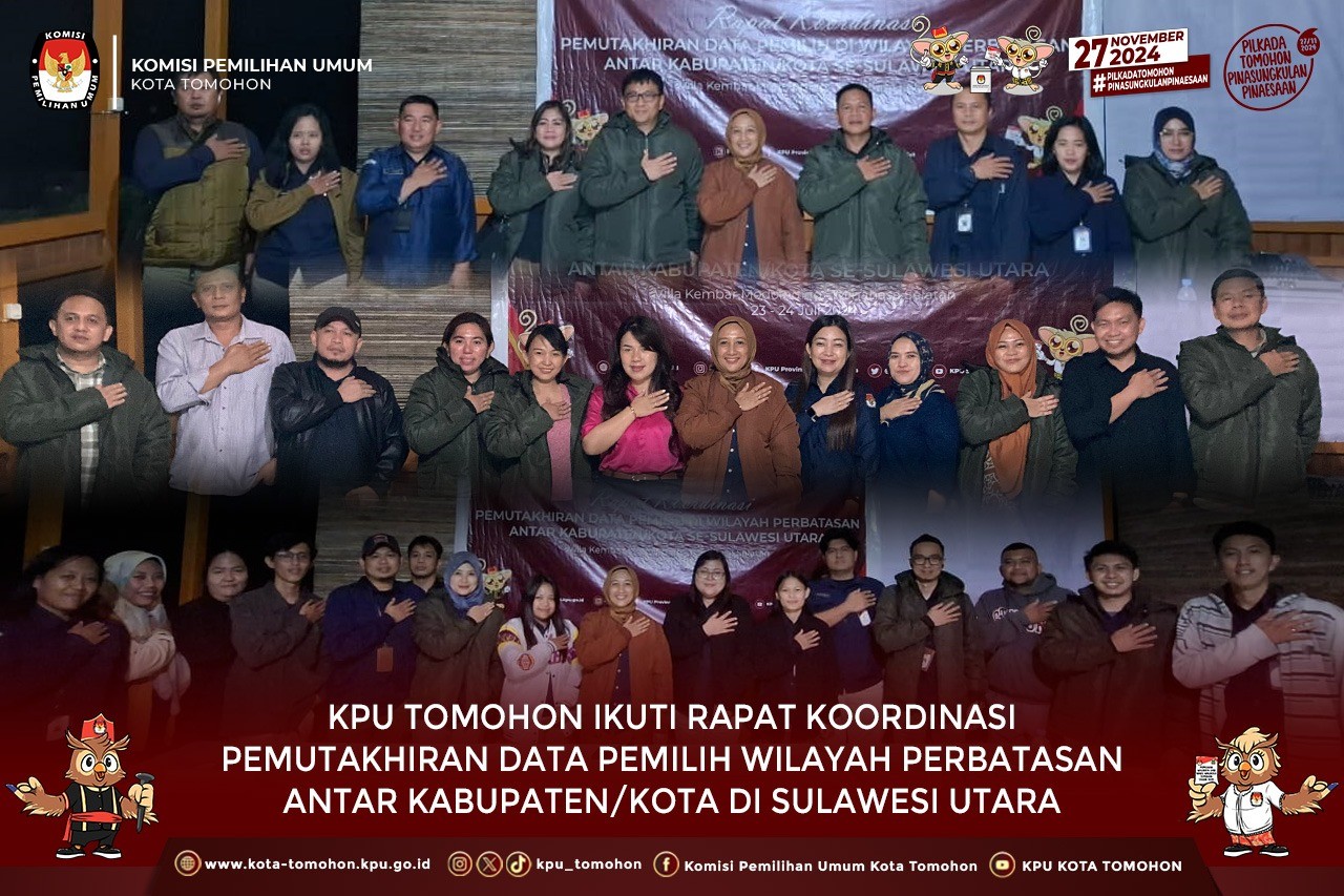 Tomohon, kota-tomohon.kpu.go.id - Komisi Pemilihan Umum (KPU) Kota Tomohon mengikuti Rapat Koordinasi Pemutakhiran Data Pemilih Wilayah Perbatasan Antar Kabupaten/Kota di Sulawesi Utara, yang diselenggarakan oleh KPU Provinsi Sulawesi Utara, bertempat di Villa Kembar Modoinding Minahasa Selatan, Selasa (23/07/2024).
