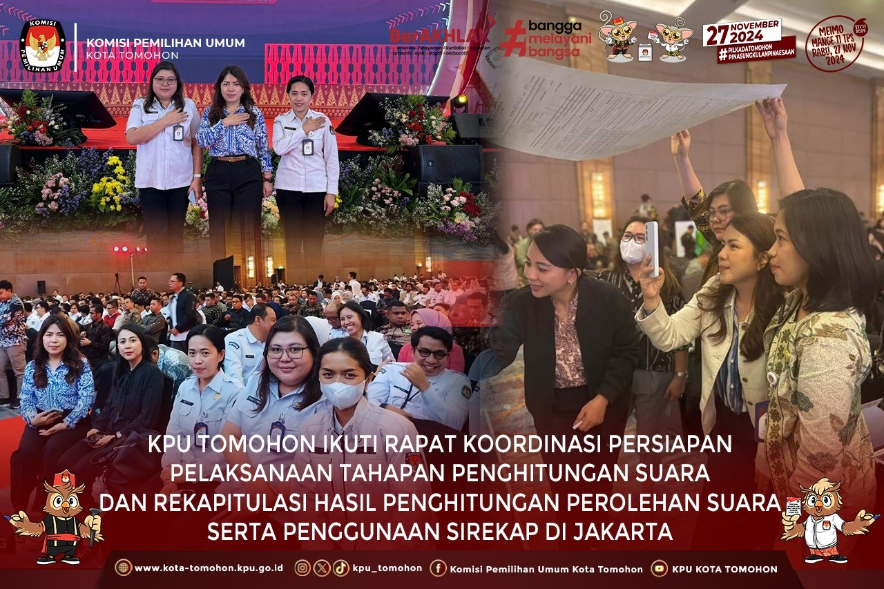 KPU Tomohon Ikuti Rapat Koordinasi Persiapan Pelaksanaan Tahapan Penghitungan Suara dan Rekapitulasi Hasil Penghitungan Perolehan Suara serta Penggunaan Sirekap di Jakarta