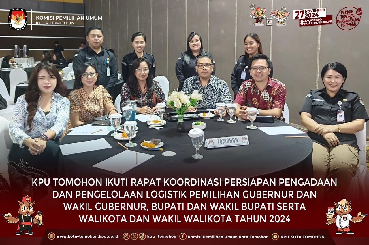 KPU Tomohon Ikuti Rapat Koordinasi Persiapan Pengadaan dan Pengelolaan Logistik Pemilihan Gubernur dan Wakil Gubernur, Bupati dan Wakil Bupati serta Walikota dan Wakil Walikota Tahun 2024