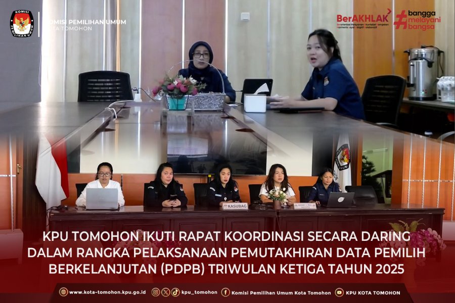 KPU Tomohon Ikuti Rapat Koordinasi Secara Daring Dalam Rangka Pelaksanaan Pemutakhiran Data Pemilih Berkelnjutan (PDPB) Triwulan Ketiga Tahun 2025