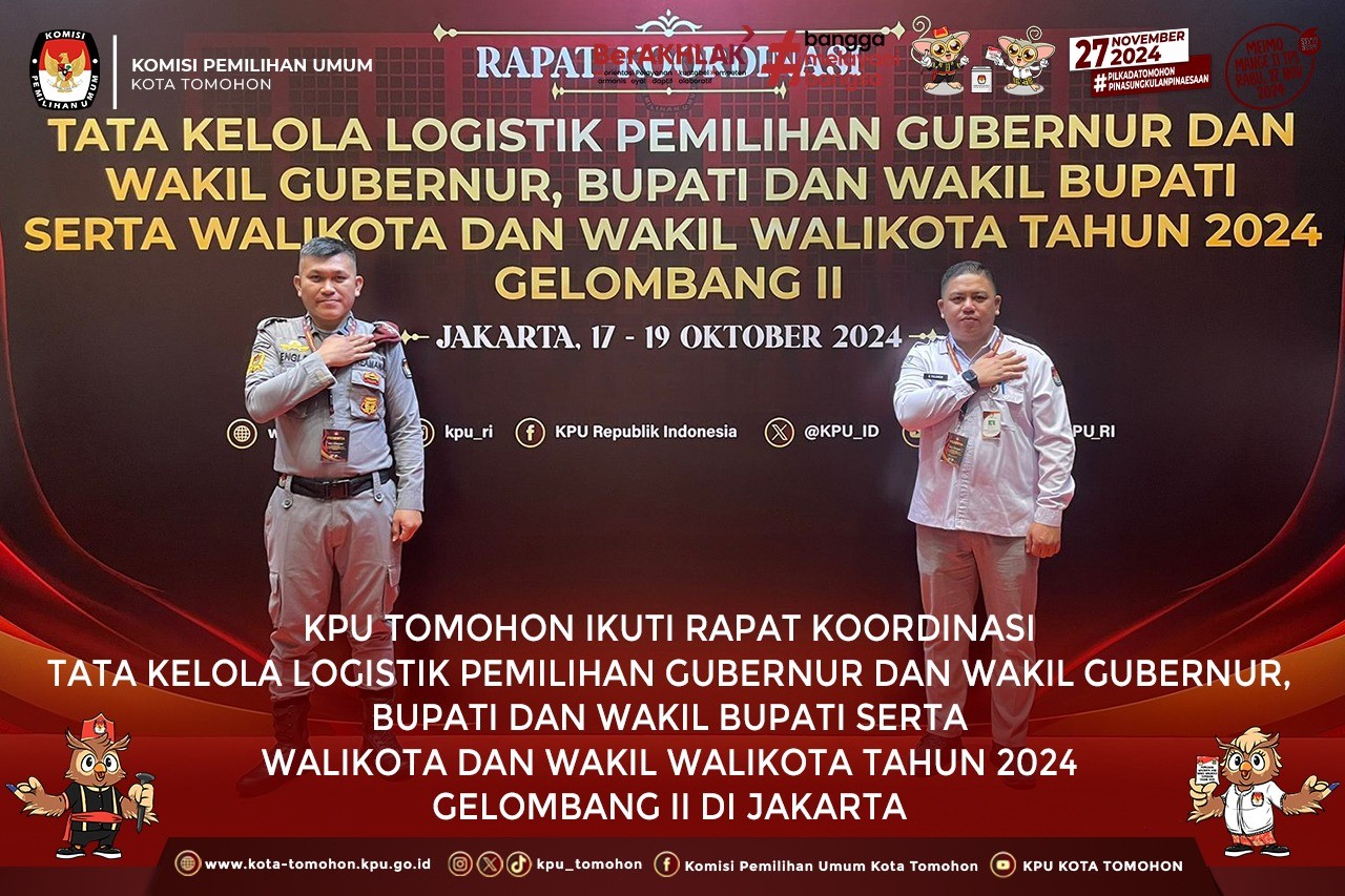 Tomohon, kota-tomohon.kpu.go.id - Rapat Koordinasi Tata Kelola Logistik Pemilihan Gubernur dan Wakil Gubernur, Bupati dan Wakil Bupati serta Walikota dan Wakil Walikota Tahun 2024 Gelombang II di Jakarta, 17 s.d 19 Oktober 2024.