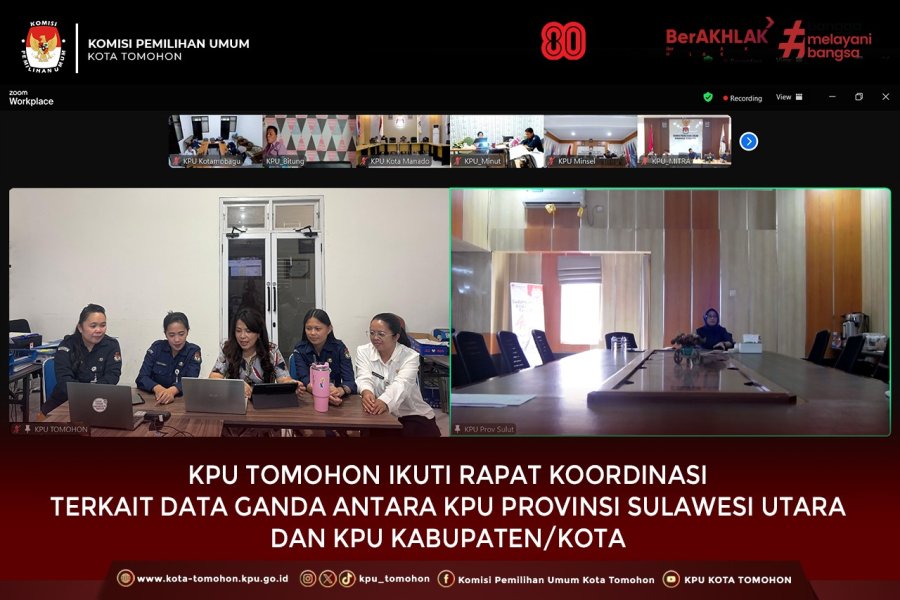 Tomohon, kota-tomohon.kpu.go.id - Komisi Pemilihan Umum (KPU) Kota Tomohom mengikuti Rapat Koordinasi Terkait Data Ganda antara KPU Provinsi Sulawesi Utara dan KPU Kabupaten/Kota, yang diselenggarakan oleh KPU Provinsi Sulawesi Utara secara daring, Selasa (12/08/2025).