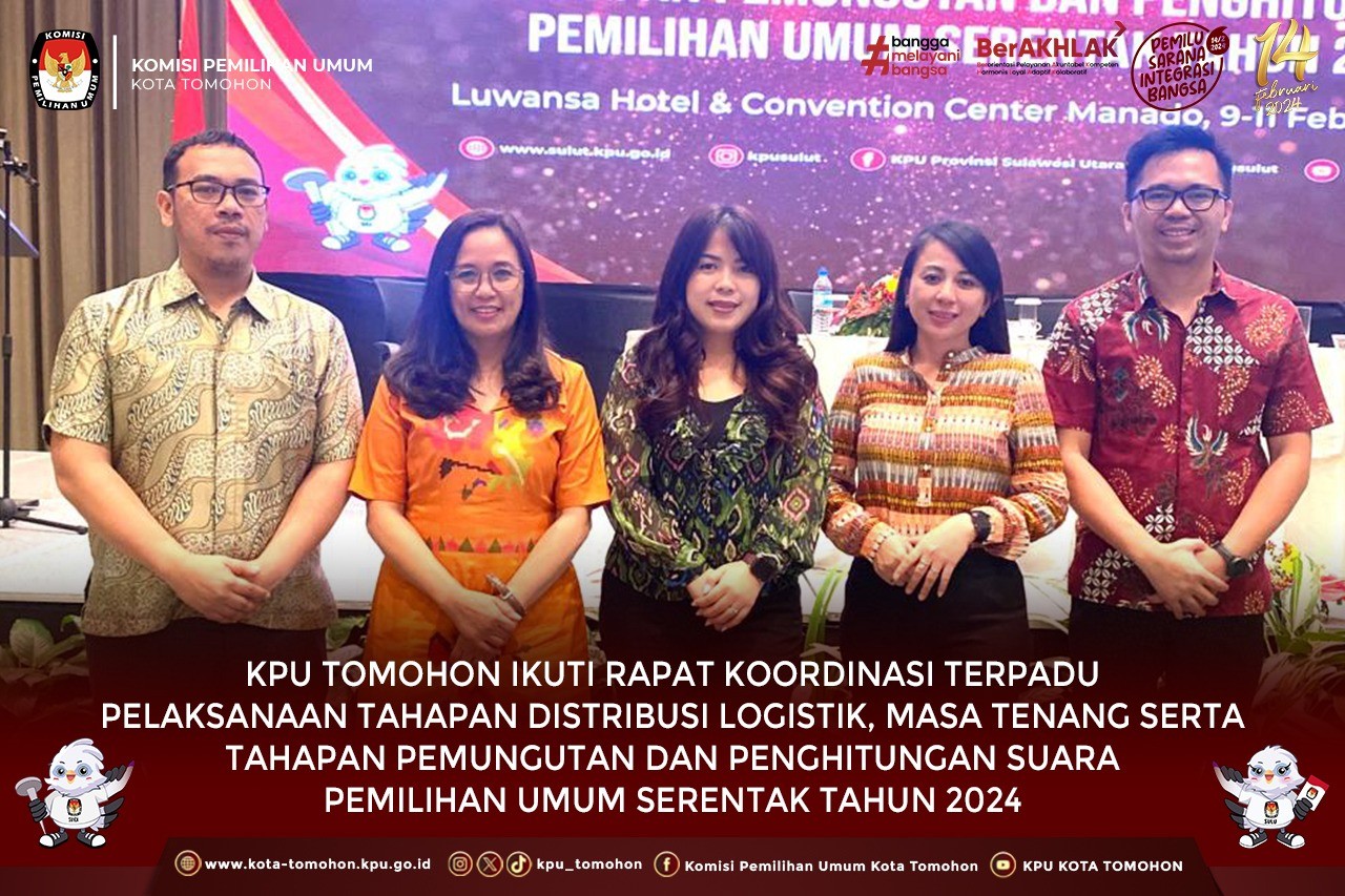 KPU Tomohon Ikuti Rapat Koordinasi Terpadu Pelaksanaan Tahapan Distribusi Logistik, Masa Tenang serta Tahapan Pemungutan dan Penghitungan Suara Pemilihan Umum Serentak Tahun 2024