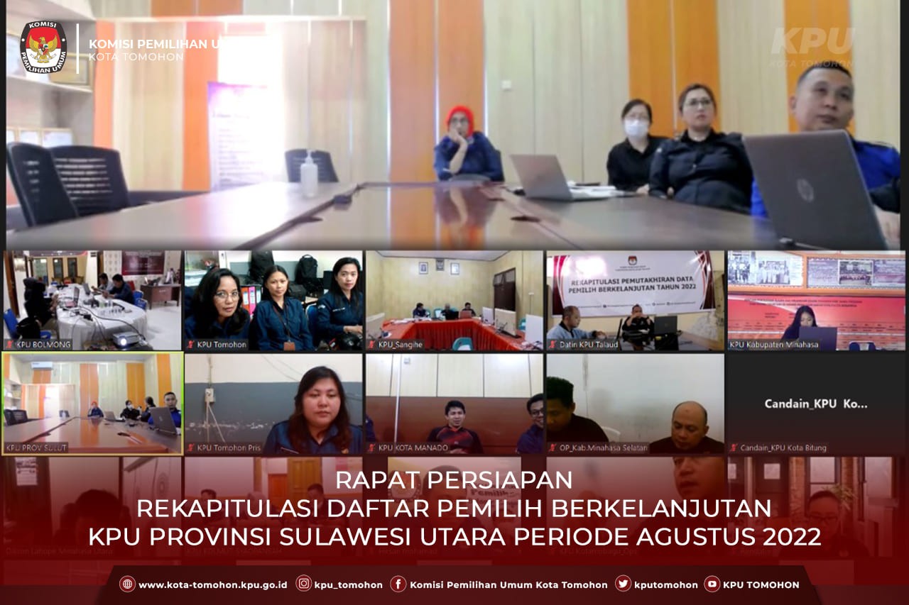 KPU Tomohon Ikuti Rapat Persiapan Rekapitulasi DPB KPU Provinsi Sulawesi Utara Periode Agustus