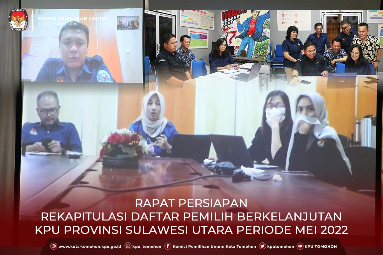 Tomohon, kota-tomohon.kpu.go.id - KPU Kota Tomohon mengikuti rapat persiapan rekapitulasi Daftar Pemilih Berkelanjutan (DPB) periode Mei 2022, yang diselenggarakan oleh KPU Provinsi Sulawesi Utara secara daring melalui aplikasi zoom meeting (31/5). Rapat diikuti oleh kadiv perencanaan, data dan informasi, kasubbag perencanaan, data dan informasi, serta operator sidalih kabupaten/kota se Sulawesi Utara.